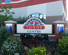 White LED illuminated logo style channel letters with pink LED (neon look) double line on the face of letters c/w LED illuminated tagline bar