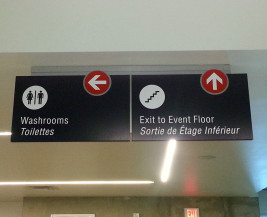 Directional signage focuses on effectively helping people find their way. And, much like architectural signs, the emphasis is on legibility and clarity of information. With such an important task, like aiding navigation or warning someone of danger ahead, it’s no surprise that high quality design and fabrication is so crucial to the success of directional signs. Examples can include something as small as a custom washroom sign or as large as a full campus map.